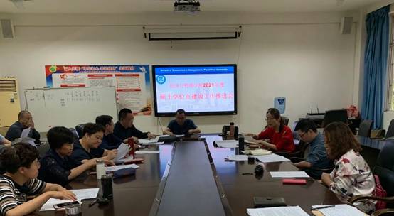 3月17日下午,经济与管理学院在经管学院会议室召开硕士学位点建设专题推进会,副校长张旭辉、教务处副处长杨勇攀出席会议,经济与管理学院副院长李博、各硕士点负责人及主要骨干教师参加会议,会议由经济与管理学院党委书记陶睿主持。