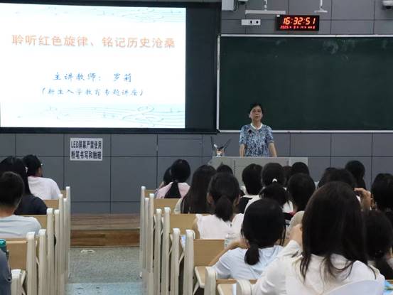 9月14日下午,经济与管理学院于志学楼101和116开展“红色经典音乐与历史知识”主题教育活动。经济与管理学院关工委罗莉担任主讲人,2025级全体新生参与其中。