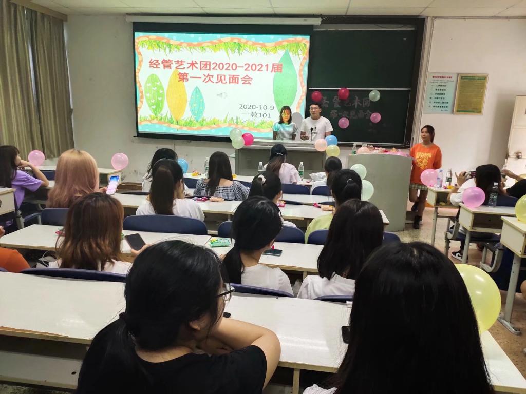 10月9日中午,经管学院艺术团于一教101举行新成员见面会。出席本次见面会的有学生科老师胡遵程,艺术团指导老师刘柯含,分团委老师唐彩虹,团委学生会主席张雪娇、夏倩云及艺术团团长尹云。
