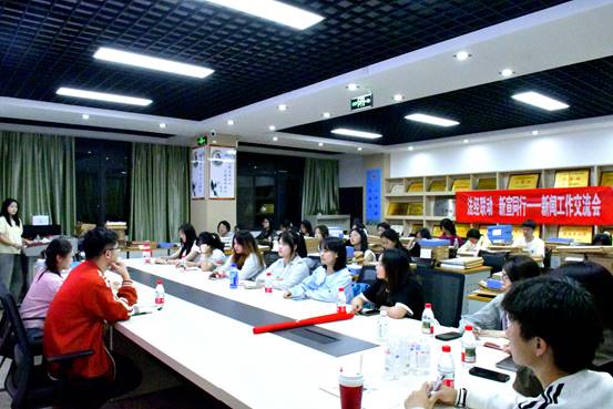会议开场,法学院新闻工作站站长丁正权致辞,寄望两院秉持“明德砺志,博学笃行”的校训,携手创新宣传。随后,经管学院新闻工作站站长郝智勤分享学院宣传特色与经验,表达合作期待。在经验交流环节,法学院李佩函、杨秋月、刘钰依次上台,分别就选题策划、照片采集、官Q运营分享实用技巧。随后,经管学院胡秦介绍了学院在新闻宣传方面的整体思路与创新做法。紧接着,两院同学在自由交流环节围绕新闻选题协作、技术工具应用、团队管理等话题展开热烈讨论,现场气氛活跃。