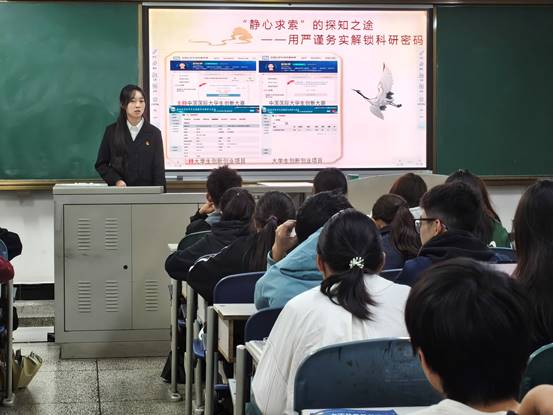 桂佳佳、彭秋苹、何婉林、肖景瑞结合自身经历,分享攻克难题的经验、参加社会实践的总结、进行创业实践的挑战及平衡学业与竞赛的方式,既有经验技巧,也有面对挫折心态调整的方法。徐定泽则介绍征兵入伍的流程,向同学们分享部队纪律中的学习、生活经验。