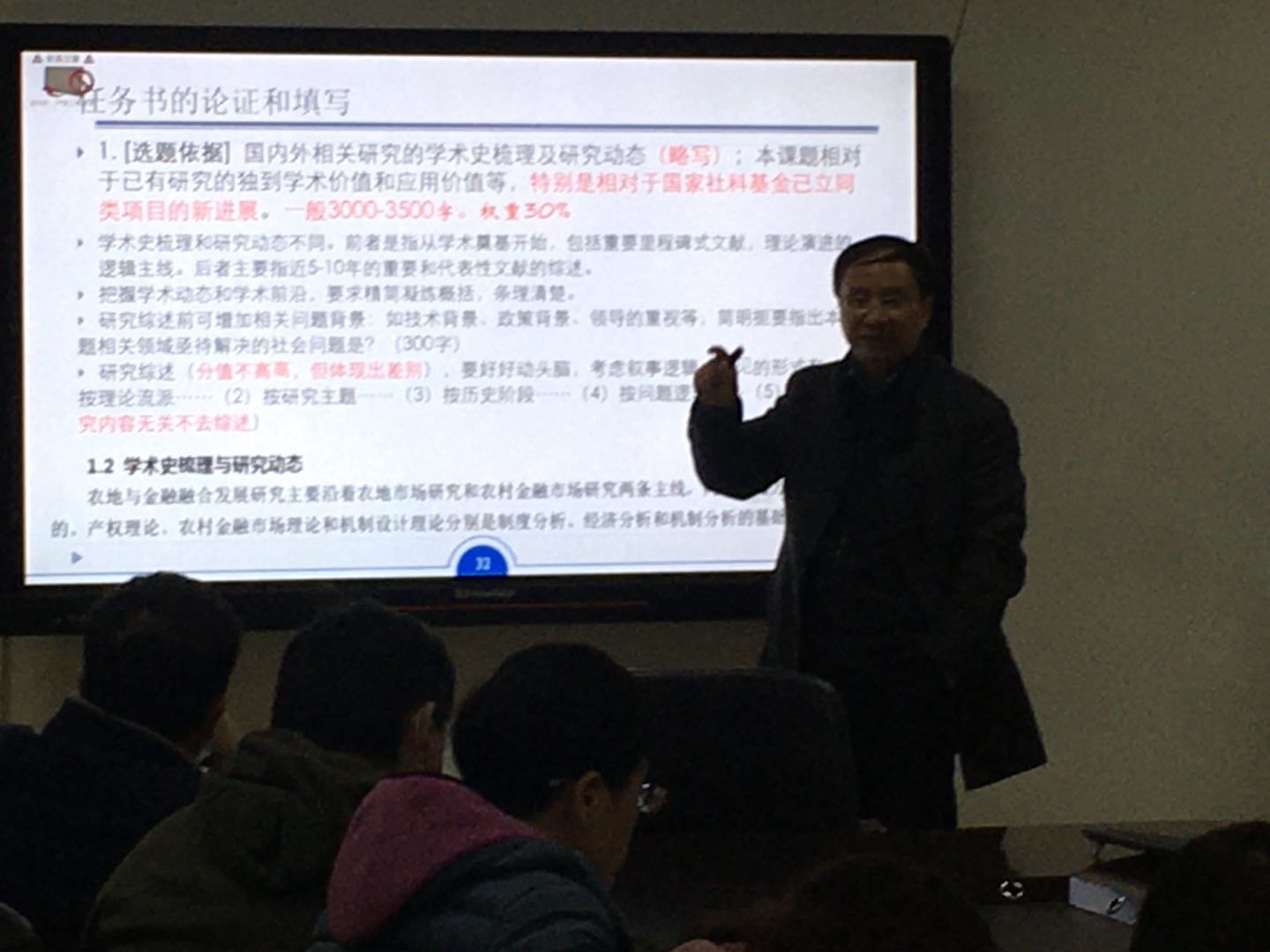 118日,四川农业大学经济学院院长蒋远胜教授、张华泉研究员应邀到我院为全体教师做关于“社科基金申报”的学术辅导,五十余名教师参会,会议由学院党委书记陶睿主持。